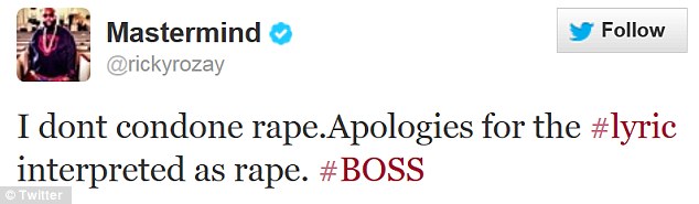 Szef Maybach Music Group ostatecznie przeprosił za swoje słowa na tweeterze. Jednak i tu nie obyło się bez krytyki ze strony opinii publicznej. Uznano, że Rick wciąż nie rozumie, że zrobił coś źle i cały czas uznaje, że jego wersy zostały jedynie nieodpowiednio zinterpetowane.