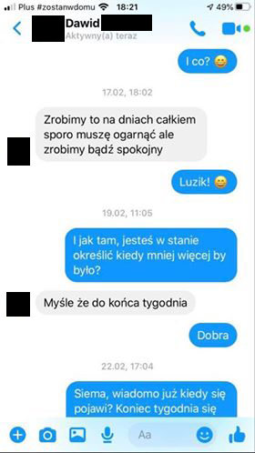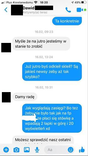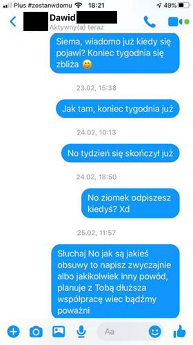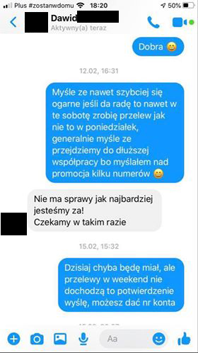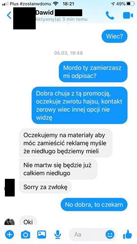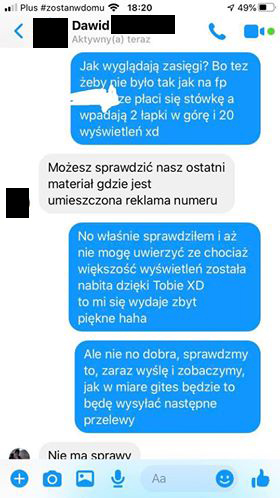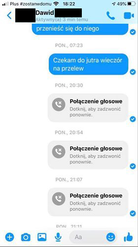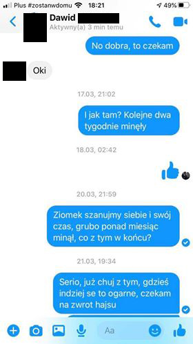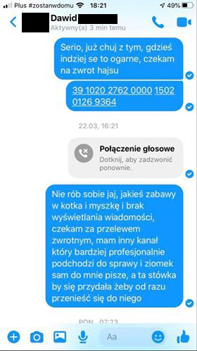 Szukaliśmy dalej i dzięki uprzejmości Kacpra – znaleźliśmy kolejną oszukaną osobę.