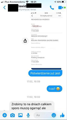 Poprosiliśmy Kacpra o dowody, które jasno wskazywałyby na oszustwo ze strony TRAPOSFERY. Dostaliśmy je od ręki i publikujemy poniżej.